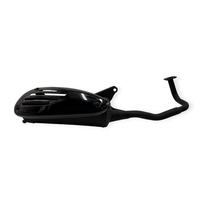 Deze uitlaat met zwart hitteschild is geschikt voor zowel de VX50/ Riva/ Vespelini en andere vespa-look modellen. De uitlaat heeft een goede pasvorm en zorgt voor een goede prestaties en mooi origineel geluid van jouw scooter. Het zwarte hitteschild beschermt jou tegen de hete demper van de uitlaat en zorgt voor een stoere uitstraling.